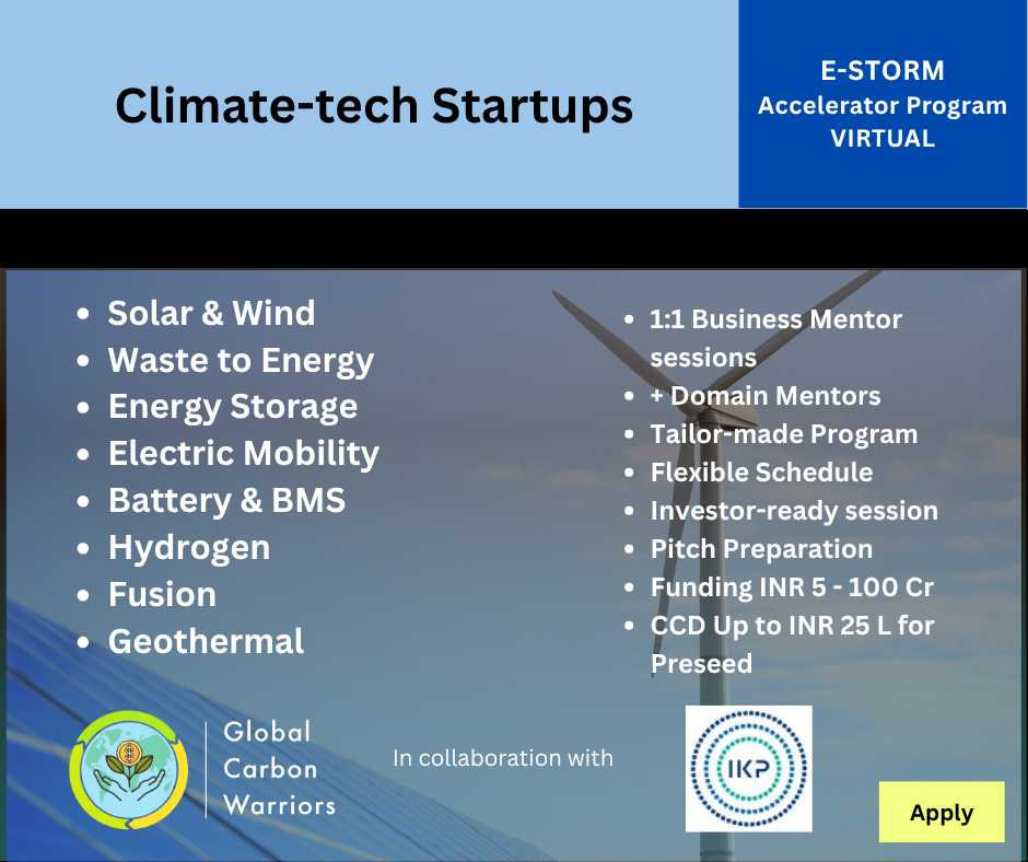 At GCW we focus on twelve sub sectors in climate, which are grouped into feasible accelerator programs. Each program’s objective is to support founders with relevance and help them gain more certainty in achieving their dreams; a single window support with mentoring, connects and funding in early stages of growth.